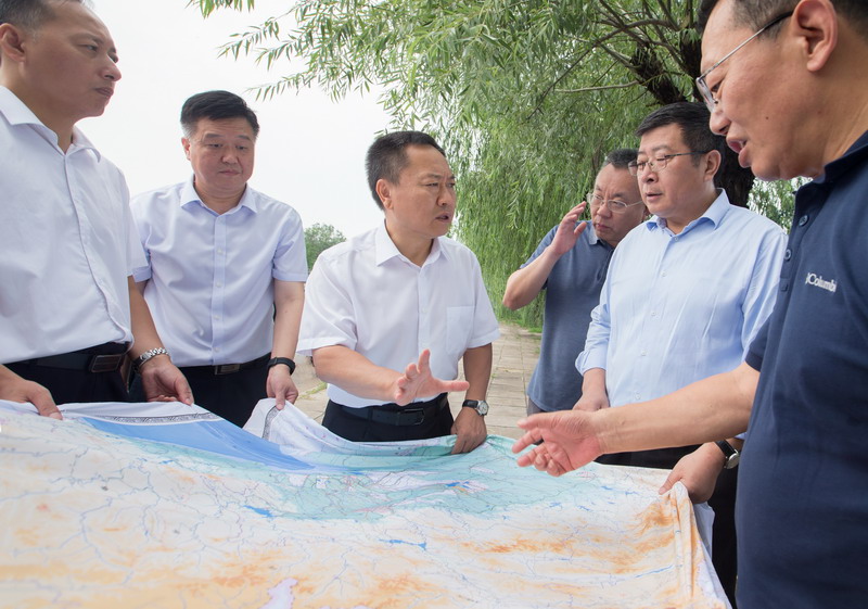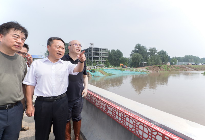 李國英先后來到永定河左堤趙村險工、大清河水系北拒馬河與南水北調(diào)中線工程交叉段、白溝河左堤東茨村段、南拒馬河右堤東馬營段、新蓋房樞紐,詳細了解洪水演進情況,現(xiàn)場檢查防險、搶險和流域防洪工程體系調(diào)度工作。