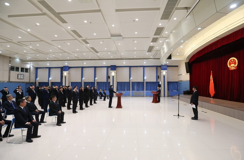 本站訊 根據(jù)《中華人民共和國(guó)憲法》和《國(guó)務(wù)院及其各部門任命的國(guó)家工作人員憲法宣誓組織辦法》規(guī)定,1月26日,水利部舉行機(jī)關(guān)新任職公務(wù)員憲法宣誓儀式,組織新任命的31名機(jī)關(guān)司處級(jí)公務(wù)員進(jìn)行憲法宣誓。水利部黨組書記、部長(zhǎng)李國(guó)英監(jiān)誓。部領(lǐng)導(dǎo)王新哲、王道席、劉偉平、朱程清、陳敏出席宣誓儀式。