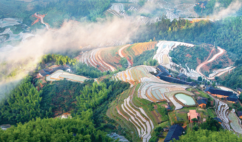 近年來,水利部門堅(jiān)持山水林田湖草沙一體化保護(hù)和系統(tǒng)治理,扎實(shí)推進(jìn)水土流失綜合治理,強(qiáng)化江河湖庫生態(tài)保護(hù)治理。圖為入選2022年度(第九批)世界灌溉工程遺產(chǎn)名錄的江西省贛州市崇義縣上堡梯田,該工程包含完善的農(nóng)田水利灌溉系統(tǒng)和良好的生態(tài)保護(hù)系統(tǒng),充分體現(xiàn)了尊重自然、順應(yīng)自然、保護(hù)自然的理念。 水利部供圖 盧鑫平/攝