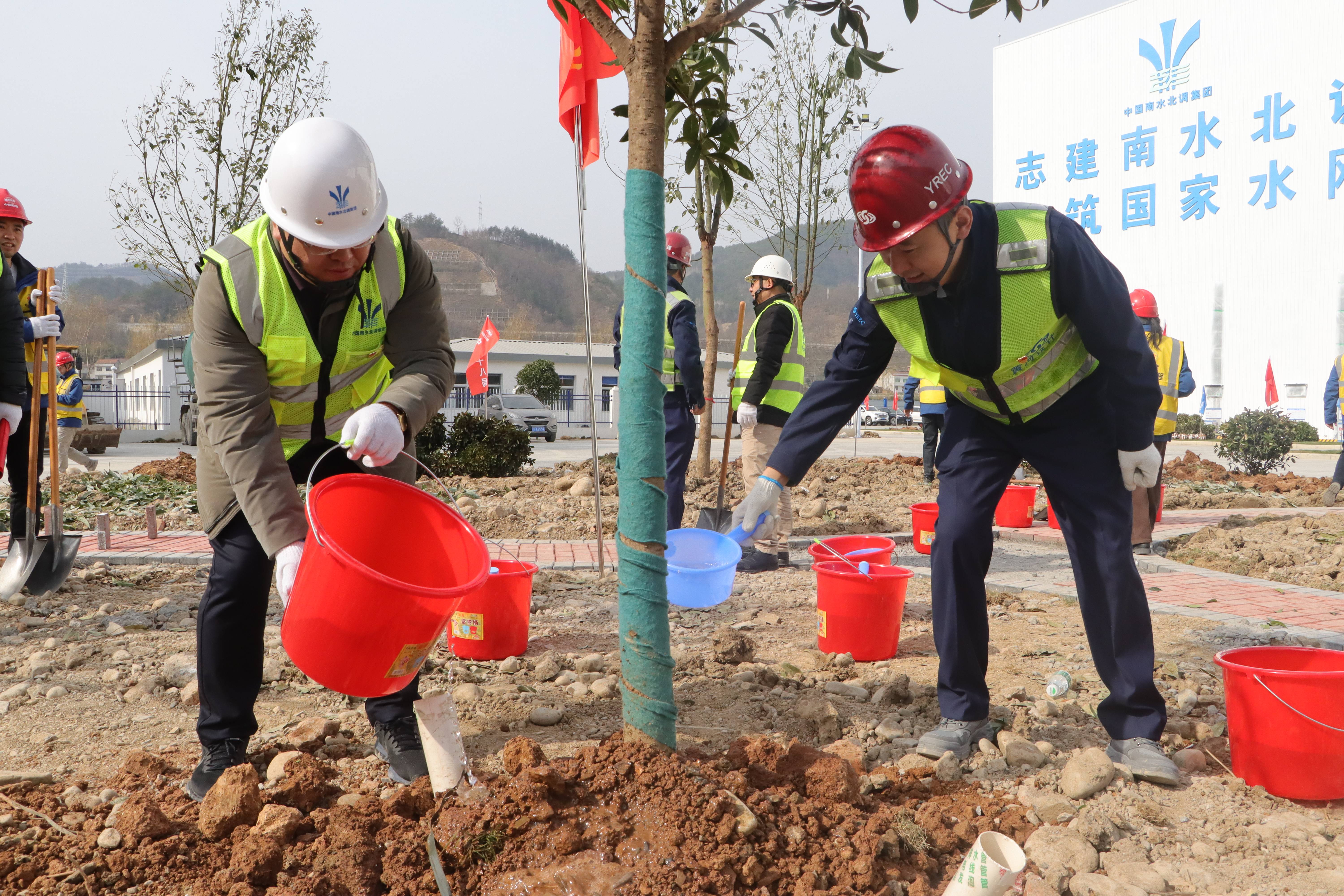 擁抱春天,“植”此青綠。此次活動在引江補漢工程8號平洞施工工區(qū)綜合加工廠舉行,建管二部黨支部聯(lián)合各參建單位黨支部共20余名黨員參加。