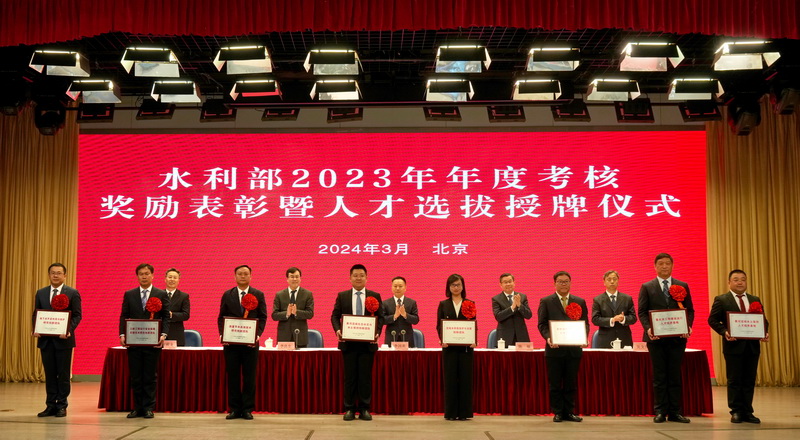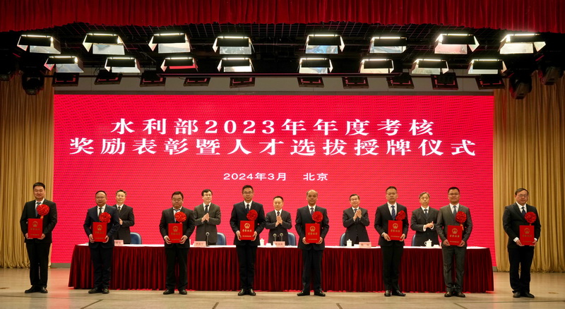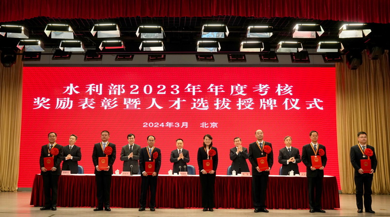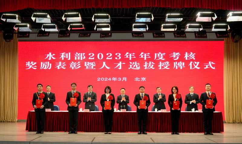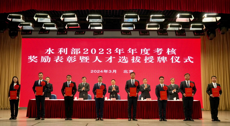 李良生宣讀了《水利部關(guān)于對2023年年度考核優(yōu)秀的部機(jī)關(guān)司局、直屬單位和部管干部、公務(wù)員給予記功嘉獎的決定》和水利領(lǐng)軍人才、青年科技英才、青年拔尖人才、人才創(chuàng)新團(tuán)隊和人才培養(yǎng)基地選拔結(jié)果。部領(lǐng)導(dǎo)為獲嘉獎的集體頒發(fā)獎牌,為記功人員佩戴獎?wù)?、頒發(fā)證書,為水利領(lǐng)軍人才、青年科技英才頒發(fā)證書,為人才創(chuàng)新團(tuán)隊和人才培養(yǎng)基地授牌。獲獎代表和水利人才代表發(fā)言。