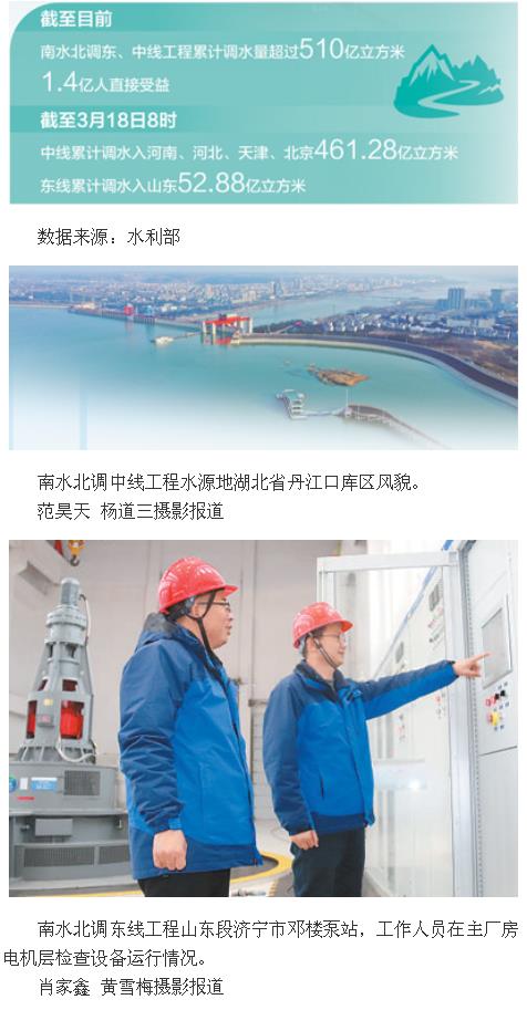 南水北調(diào)東、中線一期工程自2014年12月全面通水以來,目前累計(jì)調(diào)水量突破510億立方米。工程的實(shí)施改變了廣大北方地區(qū)的供水格局,優(yōu)化了40多座大中型城市的經(jīng)濟(jì)發(fā)展格局,1.4億人直接受益,同時(shí)推動(dòng)復(fù)蘇受水區(qū)河湖生態(tài)環(huán)境,發(fā)揮了巨大的經(jīng)濟(jì)、社會(huì)和生態(tài)效益。