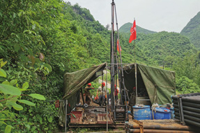 前期地質(zhì)勘探液壓鉆機(jī)作業(yè)現(xiàn)場。秦建彬
