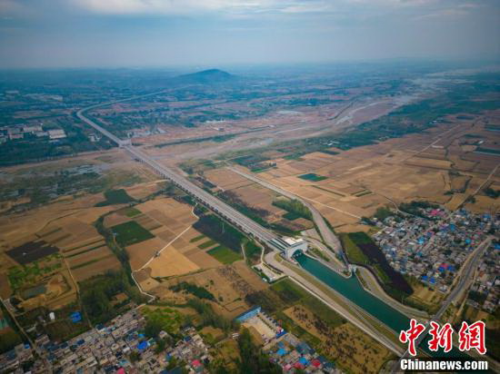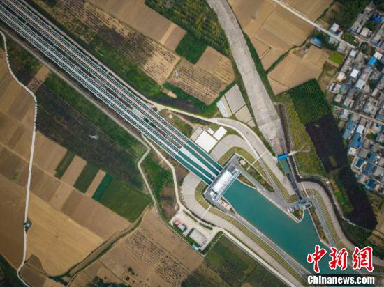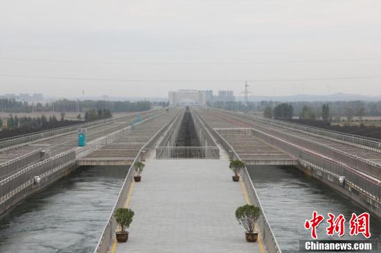 圖為一渠“南水”沿蜿蜒的總干渠北流進入沙河渡槽。 ( 闞力 攝)