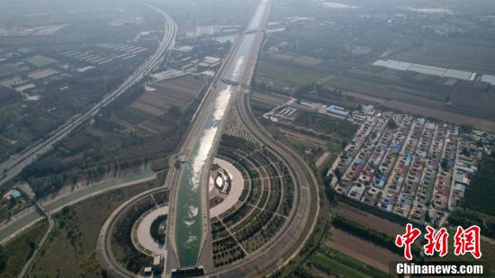 日前,記者隨“奇跡中國 天河筑夢”南水北調(diào)中線工程網(wǎng)絡(luò)主題活動采訪團(tuán),來到河北省石家莊市西北部正定縣西柏棠鄉(xiāng)新村,南水北調(diào)中線總干渠在這里通過滹沱河倒虹吸工程穿河而過。據(jù)介紹,該工程是南水北調(diào)中線干線工程上一座大型渠穿河交叉建筑物,與全線其他一系列控制性工程一起,承擔(dān)著總干渠的輸水調(diào)度任務(wù)。圖為航拍位于石家莊的南水北調(diào)滹沱河倒虹吸工程。(中國互聯(lián)網(wǎng)發(fā)展基金會中國正能量網(wǎng)絡(luò)傳播專項基金資助支持)(無人機(jī)照片)